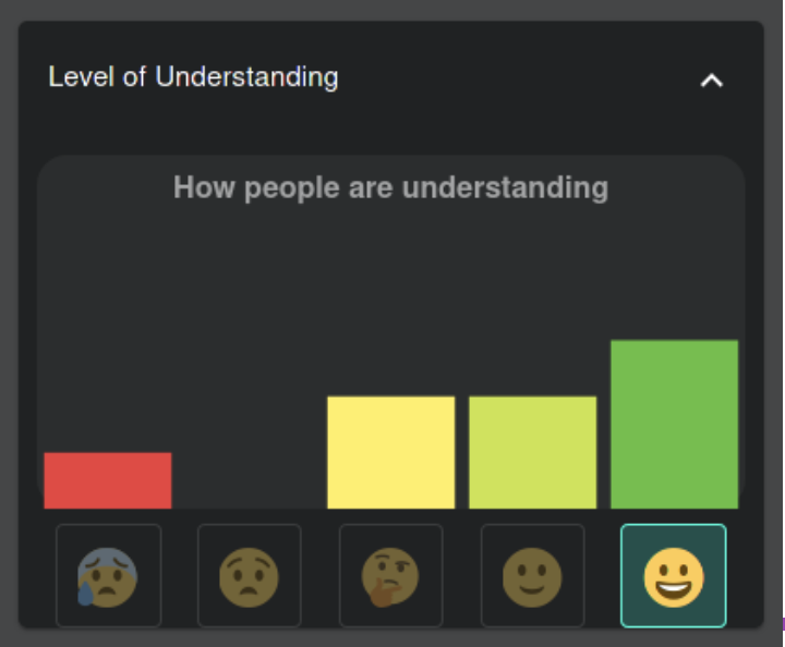 In order to further simplify the UI and meet Nielsen’s “Aesthetic and minimalist design”, we decided to get rid of the cursor on the participant side to input their level of understanding. We replaced it by clickable buttons that are directly aligned with each bar on the graph, eliminating the redundancy of having the same emojis repeated twice.